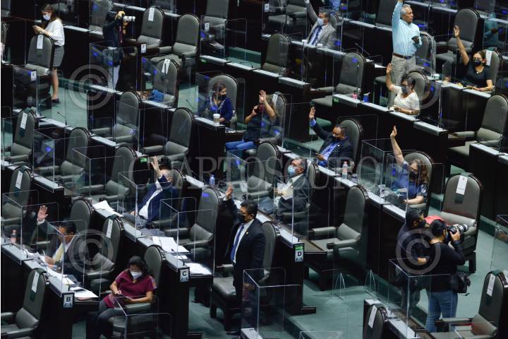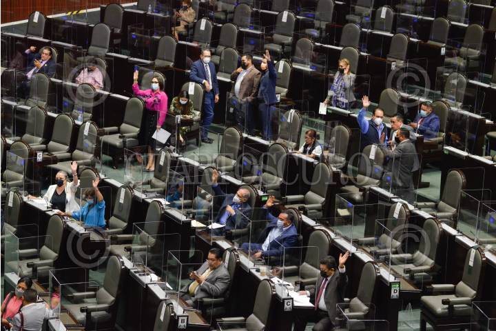 Votación del grupo parlamentario de Morena durante la sesión ordinaria de la Cámara de Diputados.