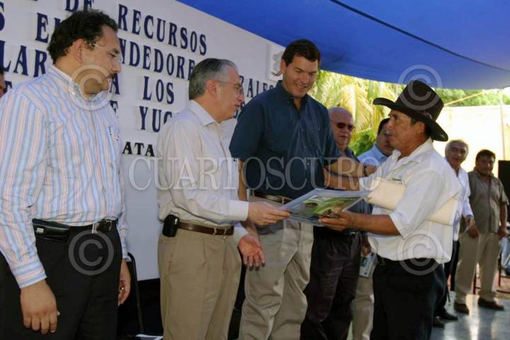 IZAMAL, YUCATAN 21JUNIO2005.- Florencio Salazar Secretario de la Reforma Agraria, otorgó a campesinos recursos para becas y proyectos de Escuela. FOTO: CUARTOSCURO.COM