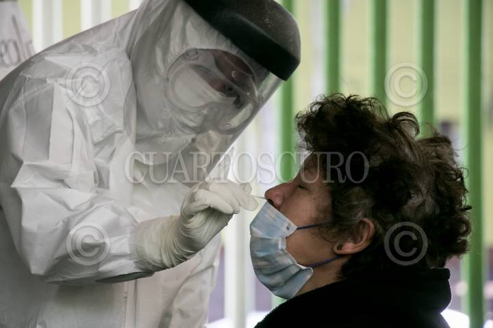 Doctora realiza toma de muestra nasal a paciente. FOTO: ROGELIO MORALES /CUARTOSCURO.COM
