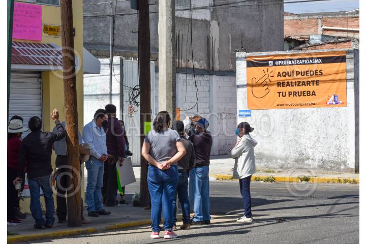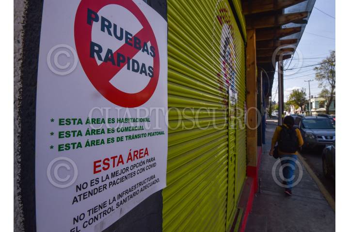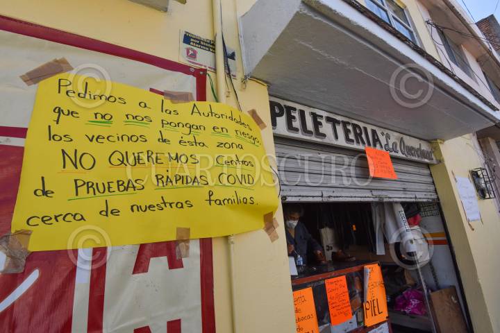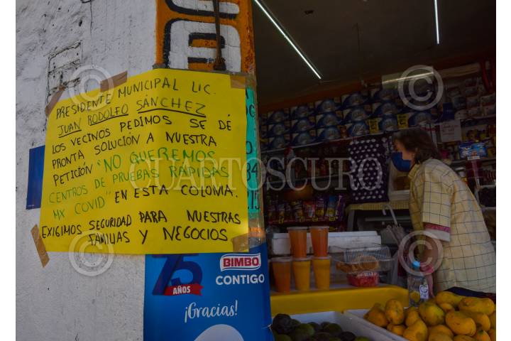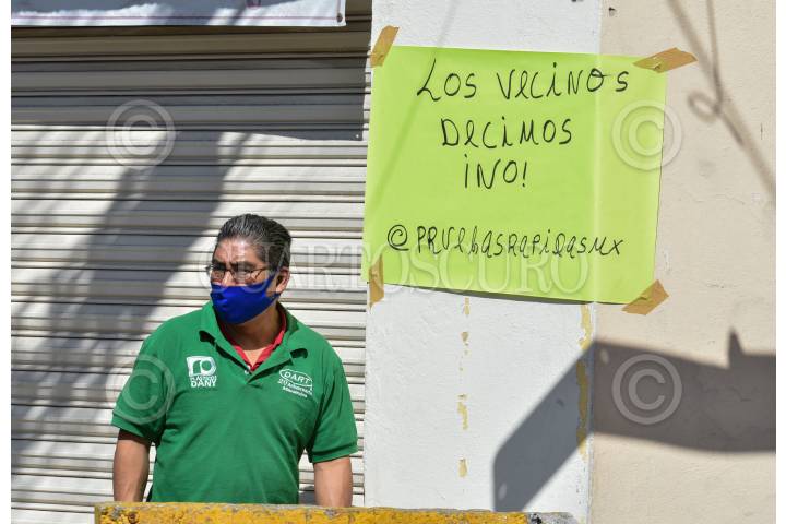 Vecinos de la colonia Cuauhtémoc en Toluca rechazan la operación de un negocio de aplicación de pruebas rápidas de COVID-19.