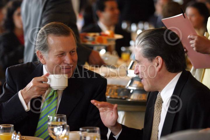 México, D.F., 10AGOSTO2004.- Manuel Angel Nuñez Soto, gobernador de Hidalgo y Julio Frenk Mora, seretario de Salud, durante la inauguración del Primer Encuentro Internacional de la Reforma Psiquiátrica. FOTO: Moisés Pablo/CUARTOSCURO.COM