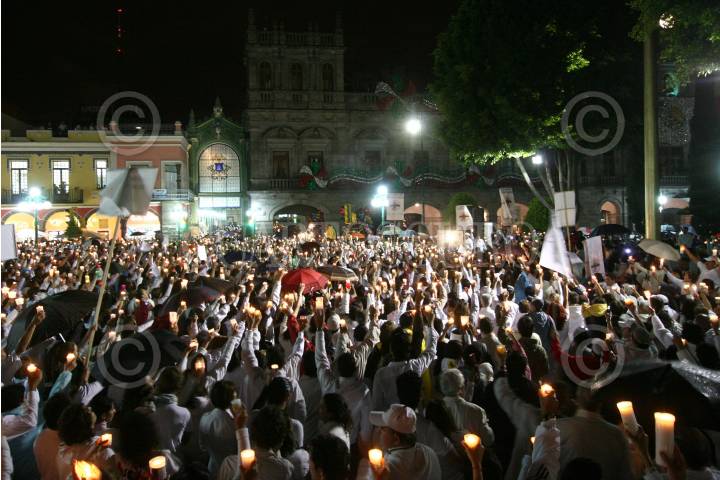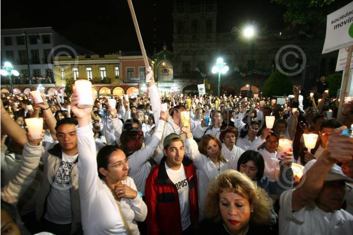 PUEBLA, PUEBLA, 31AGOSTO2008.- Los poblanos se unieron a la marcha "Iluminemos México" contra la delincuencia. Cientos de poblanos acudieron al zócalo de esta ciudad para decir "Ya Basta" a la ola de crÌmenes y violencia que se han presentado a lo largo de toda la república. FOTO: JAVIER PALACIOS/CUARTOSCURO.COM