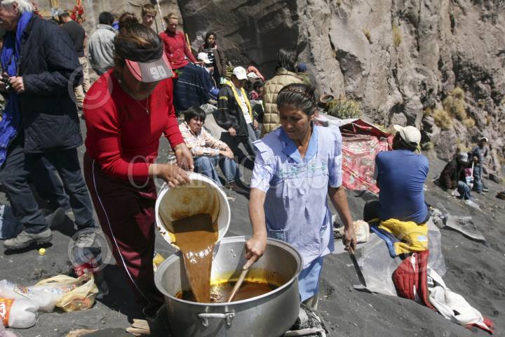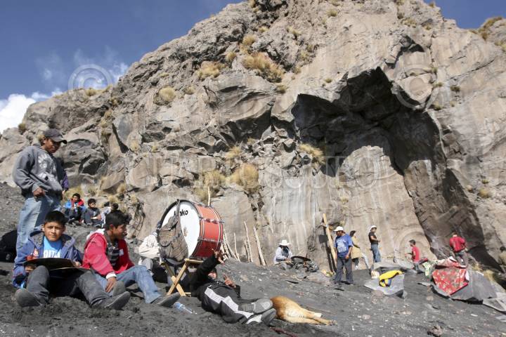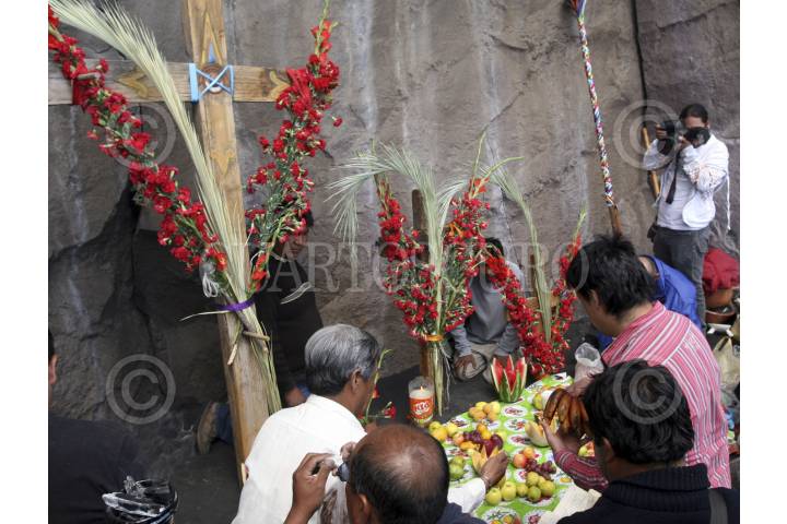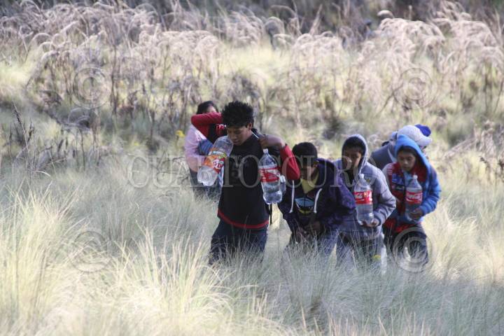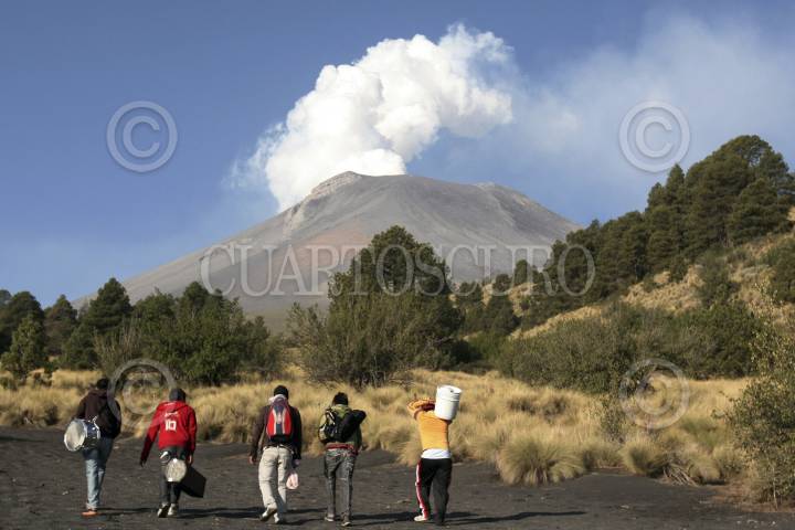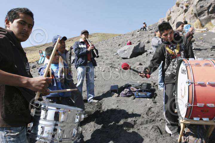 SANTIAGO XALITZINTLA, PUEBLA, 02MAYO2012.- Habitantes del pueblo de Santiago Xalitzintla subieron al "ombligo" de Don Goyo para colocarle una ofrenda que les provea de lluvia para sus cosechas, también le pidieron al Popocatépetl que se este tranquilo esto debido a las fumarolas que ha lanzado en las últimas semanas. FOTO: HILDA RIOS /CUARTOSCURO.COM