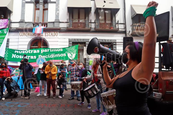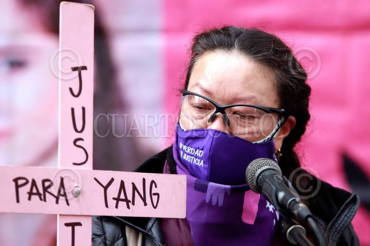 Mónica Borrego, madre de Yang quien fue víctima de feminicidio, acudió al plantón que feministas mantienen en el Congreso de Puebla para exigir la despenalización del aborto en el estado.