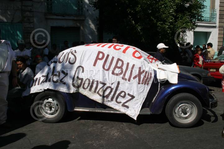 México, D.F. 17 FEBRERO 2004.- Afectados por la compañia Publi XII, protestaron afuera de la Secretarí de Gobernación, y acusan a la secretaría de complicidad con la PGR y Publi XII, ya que no han resuelto la entrega de los automóviles. FOTO: Sandra Perdomo/CUARTOSCURO.COM
