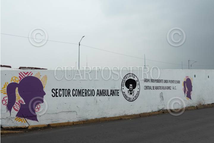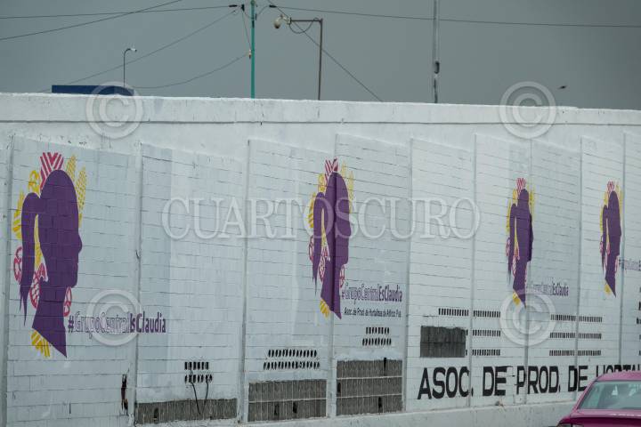 Aspecto de las vallas en apoyo a Claudia Sheinbaum en la Central de Abastos.