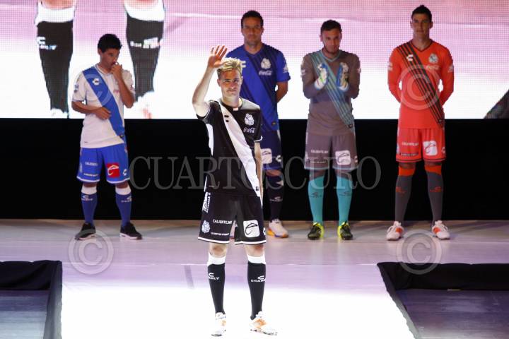 PUEBLA, PUEBLA, 23JULIO2015.- Presentación de los uniformes oficiales del Puebla de la Franja para el torneo de apertura 2015 de la liga MX del fútbol mexicano. FOTO: HILDARÍOS /CUARTOSCURO.COM