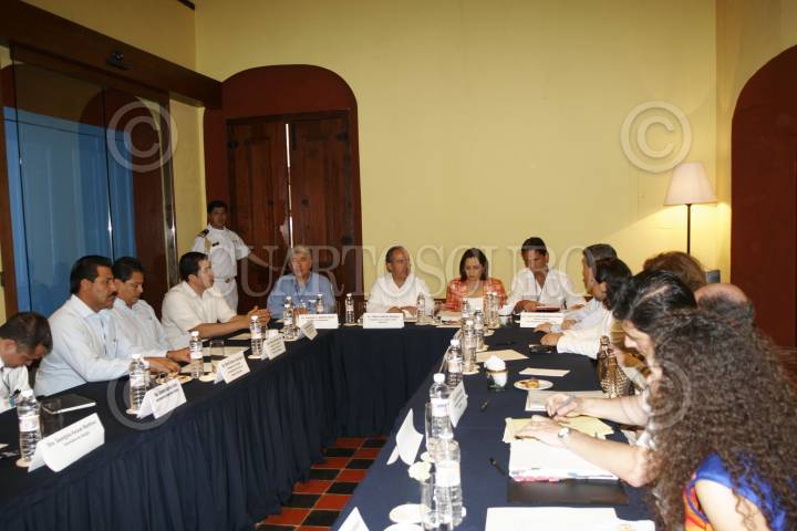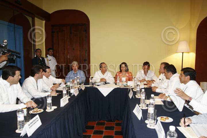 CAMPECHE, CAMPECHE, 09ABRIL2007.- Felipe Calderón Hinojosa, Presidente de la República, sostuvó una reunión con los gobernadores que participan en la cumbre del plan Puebla-Panama, que tuvó lugar en el salón Bronce del hotel Hacienda Puerta Campeche. FOTO: ALFREDO GUERRERO/CUARTOSCURO.COM