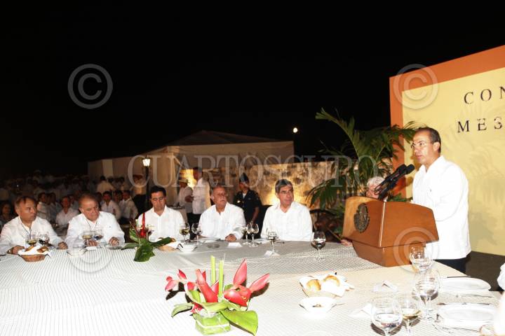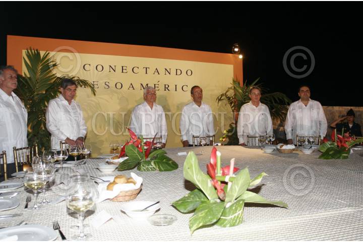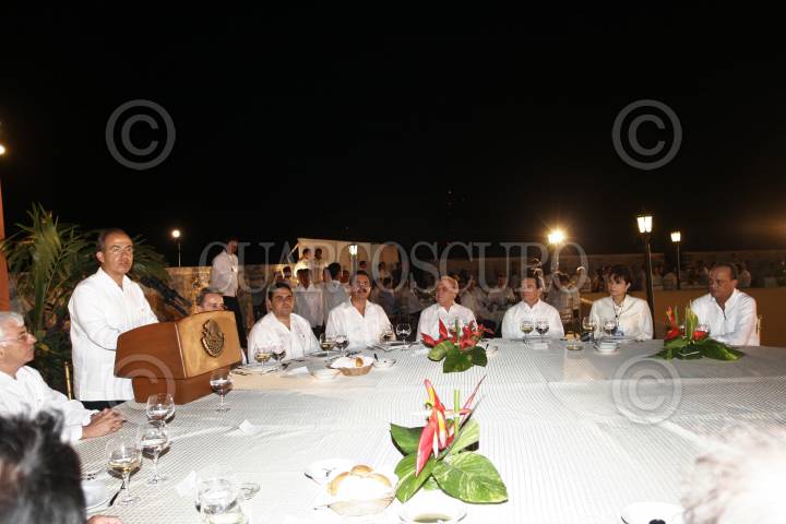 CAMPECHE, CAMPECHE, 09ABRIL2007.- Felipe Calderón Hinojosa, Presidente de la República, ofreció una cena en honor a los excelentisimos Jefes de Estado y de gobernadores participante en la Cumbre Plan Puebla-Panama, en el fuerte de San Miguel. FOTO: ALFREDO GUERRERO/CUARTOSCURO.COM