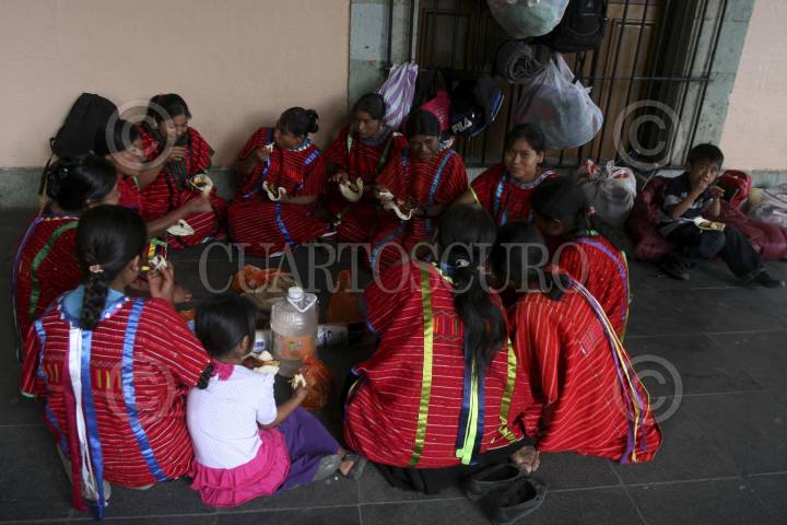 OAXACA, OAXACA, 09OCTUBRE2012.- Indígenas triquis desplazados de Copala reinstalaron la tarde de este lunes su plantón en el Palacio de Gobierno y anunciaron buscarán la intervención de la Comisión Interamericana de Derechos Humanos (CIDH) a fin de que se logre la pacificación de la zona triqui y su retorno a su comunidad de origen. Además presentaron de manera formal a la nueva representación de los desplazados, Lorena Merino Martínez y Manuel de Jesús Vázquez. FOTO: ARTURO PÉREZ ALFONSO /CUARTOSCURO.COM
