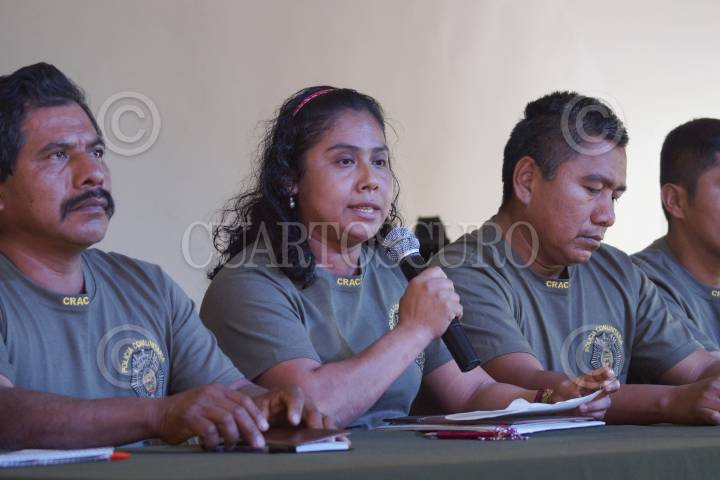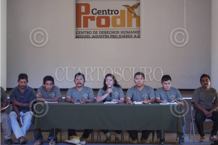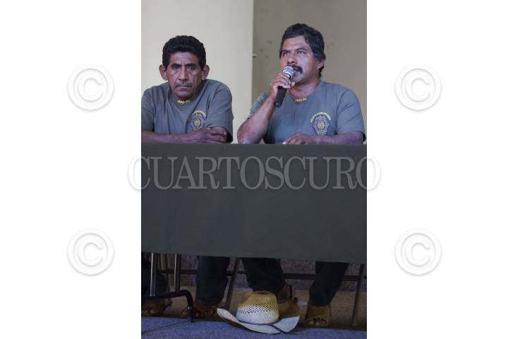 MÉXICO, D.F., 13MARZO2013.- Cirilo Vazquez Cayetano, Rey Pastrana Peralta, Nicasio Castro Agustín, Adelaida Hernández Nava, Eliseo Villar, Delfino García Ramírez y Rufino Reyes, integrantes de la Coordinadora Regional de Autoridades Comunitarias (CRAC), durante la conferencia de prensa en la que hablaron del trabajo de la Policía Comunitaria en Guerrero, y del desconocimiento al proyecto del Gobierno del Estado para institucionalizar las policías comunitarias. FOTO: ADOLFO VALTIERRA /CUARTOSCURO.COM