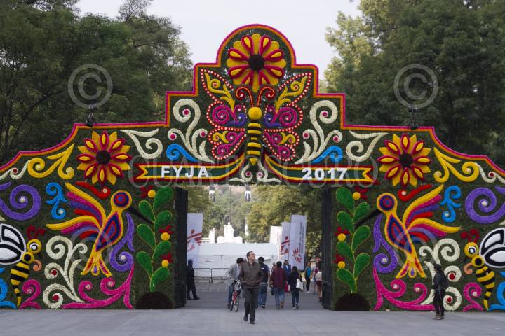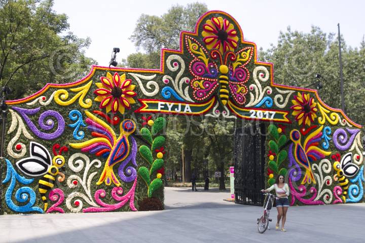 CIUDAD DE MÉXICO, 30MARZO2017.- La Puerta de Los Leones fue decorada con flores, como parte de las actividades del Festival Flores y Jardines 2017. FOTO: MOISÉS PABLO /CUARTOSCURO.COM