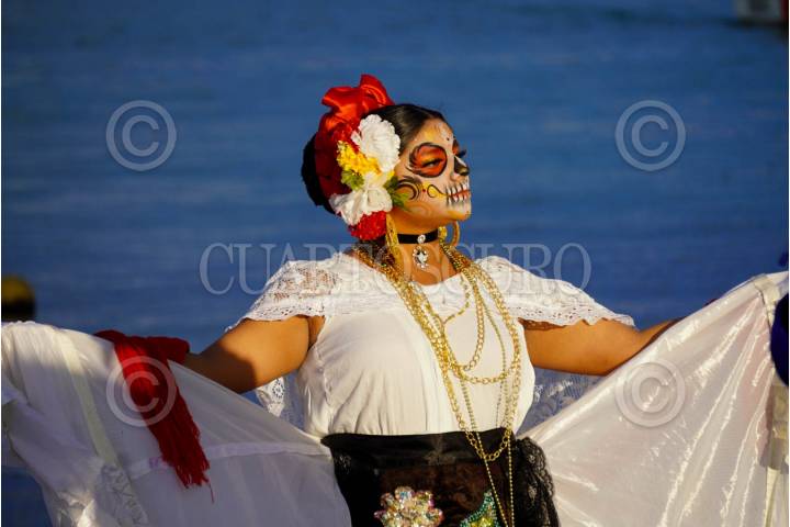 PUERTO JUAREZ, QUINTANA ROO, 31OCTUBRE2023.- En medio de un espectáculo colorido y místico, las calles de Puerto Juárez se iluminan con la presencia de las Catrinas, marcando el inicio del #HanalPixan. El desfile, que arrancó a las 5 p.m., ha sumergido a la ciudad en una celebración vibrante, honrando las tradiciones del Día de los Muertos. Las figuras elegantes de las Catrinas, vestidas con atuendos magníficos y rostros decorados con calaveras, desfilan entre el público, añadiendo un aire de misticismo y solemnidad al evento. Los asistentes se congregan para ser testigos de esta festividad arraigada en la cultura mexicana, que celebra la vida de aquellos que han partido. FOTO: ELIZABETH RUIZ/CUARTOSCURO.COM