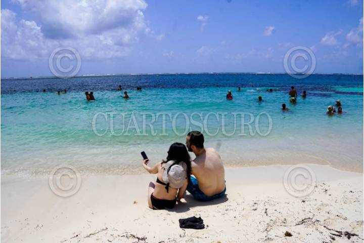 PUERTO MORELOS, QUINTANA ROO, 16JUNIO2025.- Las playas en Puerto Morelos lucen sin sargazo. Turistas disfrutaron de un día despejado mientras la sargacera trabaja a toda máquina. FOTO: ELIZABETH RUIZ/CUARTOSCURO.COM