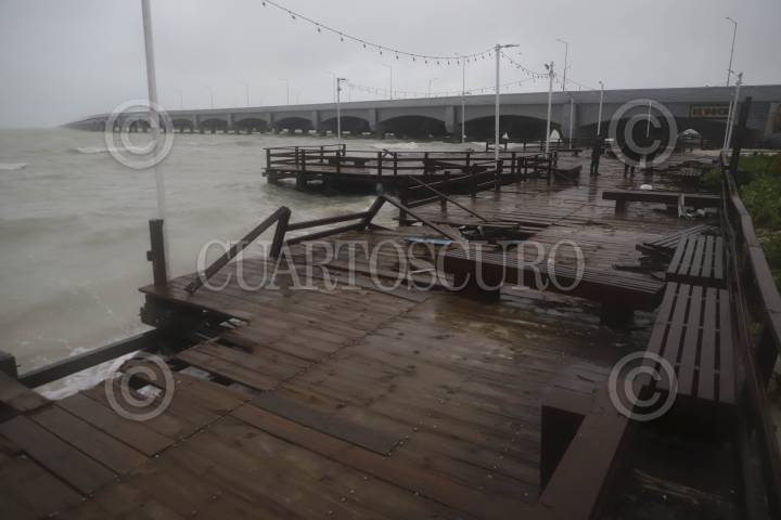 PROGRESO, YUCATÁN, 08OCTUBRE 2024.- El huracán Milton ocasionó estragos en el municipio y puerto de Progreso tras su paso. Cerca de la media noche el Huracán disminuyó su categoría a 4 en la escala Saffir-Simpson y se dejo sentir al noroeste de Yucatán, actualmente se encuentra rumbo a Miami. FOTO: MARTÍN ZETINA/CUARTOSCURO.COM