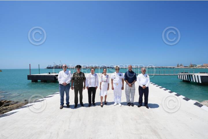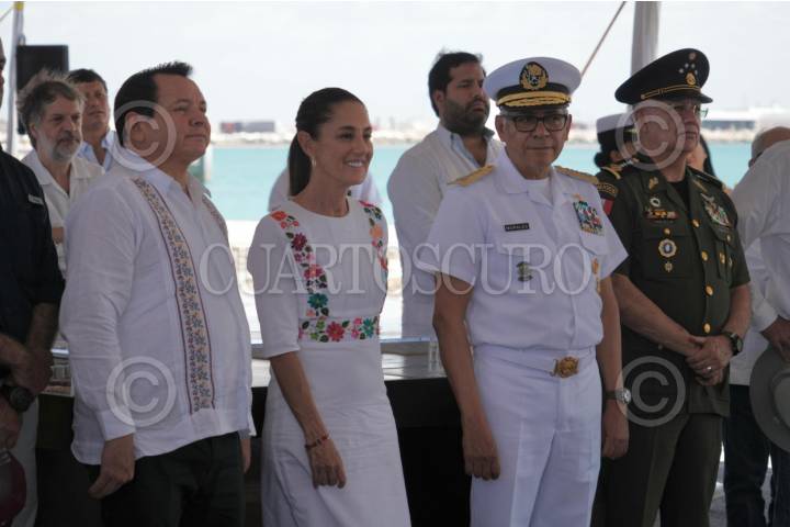 PUERTO PROGRESO, YUCATÁN, 26ABRIL2025.- Claudia Sheinbaum, presidenta de México, anunció la licitación de Puerto Progreso que ampliará tres veces más la capacidad de hectáreas. FOTO: PRESIDENCIA/CUARTOSCURO.COM