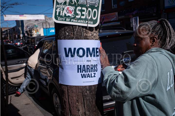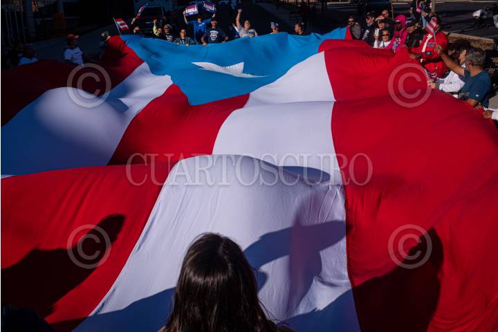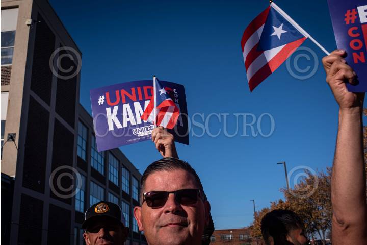 FILADELFIA, ESTADOS UNIDOS, 02NOVIEMBRE2024.- Miembros de la comunidad Puertorriqueña de Pensilvania, manifestando su descontento con el incidente del domingo pasado, cuando el comediante Tony Hinchcliffe, en un acto de apoyo al candidato republicano Donald Trump, se refirió al país caribeño como una "isla de basura flotante", demuestran apoyo a la candidata del partido demócrata, Kamala Harris, en las calles de Filadelfia. Sindicatos y organizaciones sociales participaron a su vez en actos de apoyo a la diáspora puertorriqueña. FOTO: PEDRO ANZA /CUARTOSCURO.COM