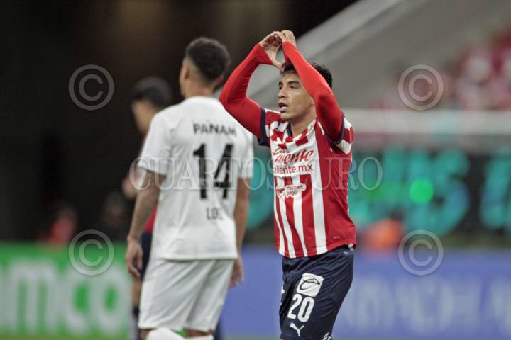 ZAPOPAN, JALISCO, 12FEBRERO2025.- Fernando Beltrán jugador de Chivas celebra su anotación, esto en partido correspondiente los 16avos de Final de vuelta de la Concachampions, en donde se enfrentan los equipos de Chivas (México) vs Cibao (Republica Dominicana) y en juego que se lleva a cabo en el Estadio Akron, el marcador al momento es 2-0 a favor del equipo de casa. FOTO: FERNANDO CARRANZA GARCIA / CUARTOSCURO.COM