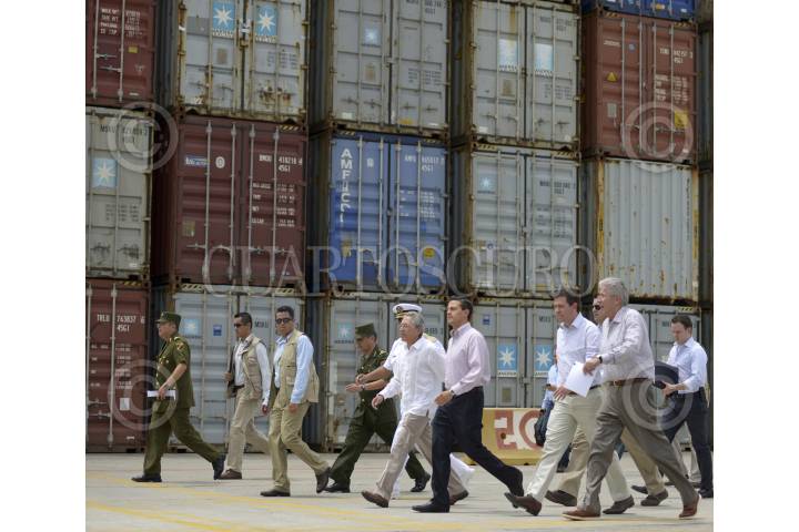 LÁZARO CÁRDENAS, MICHOACÁN, 10SEPTIEMBRE2014.- Durante su gira de trabajo a este municipio del Pacífico mexicano, el Presidente Enrique Peña Nieto abanderó las embarcaciones “Ballena” y “Cachalote”, y develó la Placa de Modernización y Equipamiento del Puerto de Lázaro Cárdenas, obras cuya inversión fue de más de dos mil 500 millones de pesos, y con ello se amplió la capacidad portuaria de este recinto en 50 por ciento más de la que tenía al inicio de esta Administración. Además, se crearon arriba de mil 200 empleos directos. FOTO: PRESIDENCIA /CUARTOSCURO.COM