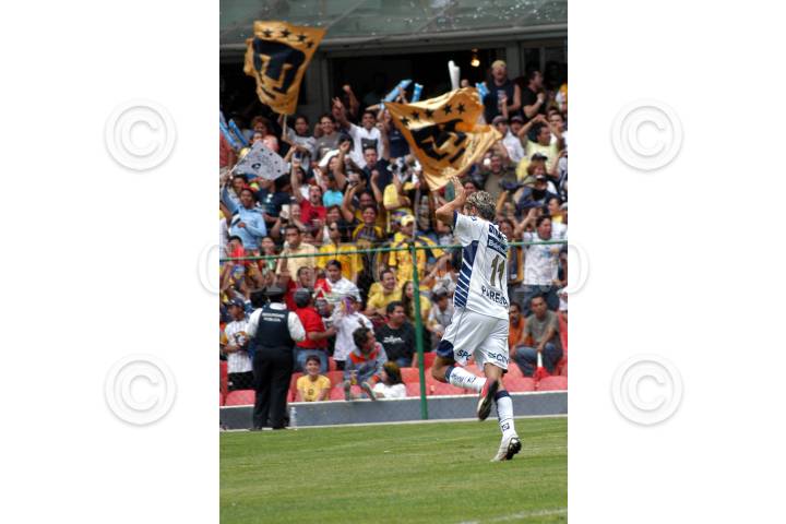 MÉXICO, DF., 14OCTUBRE2007.- Rubens Sambueza festeja el segundo tanto de los pumas, en partido realizado en el Estadio Olimpico Universitario, donde los Pumas golean 3 - 0 a los Tigres de la U de NL. FOTO: CLAUDIA ARÉCHIGA/CUARTOSCURO.COM