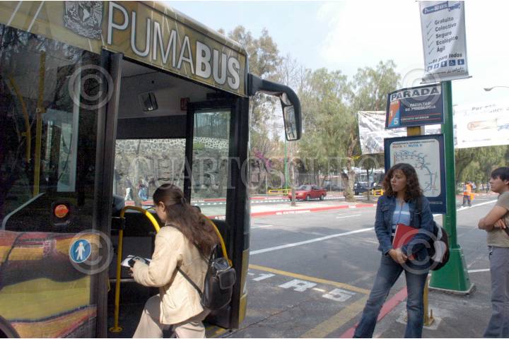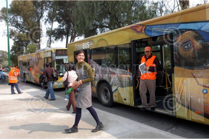 MÉXICO, D.F. 29ENERO2007.- En Ciudad Universitaria se implantò un nuevo sistema de transporte llamado "Pumabus" que pretende bajar la afluencia de vehículos en el campus. FOTO: PAOLA HIDALGO/CUARTOSCURO.COM