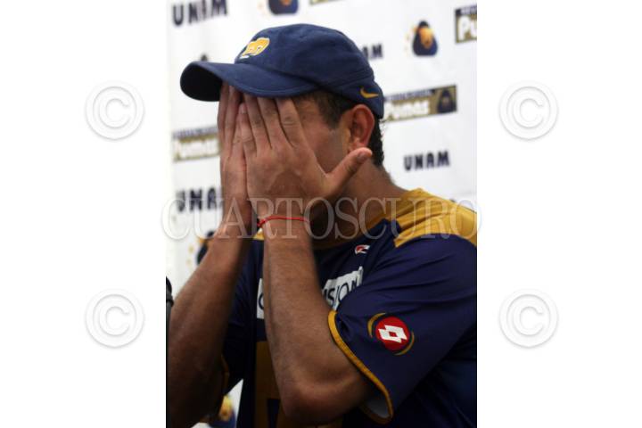 MÉXICO,D.F04ENERO2008.- El jugador Arturo Bernal en conferencia de prensa al término del entrenamiento en el estadio olimpico. universitario con el equipo de los Pumas. FOTO: SASHENKA GUTIERREZ/CUARTOSCURO.COM