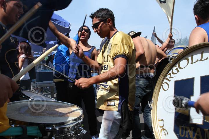 MÉXICO, D.F., 04OCTUBRE2015.- Seguidores de los pumas festejan el gol de Eduardo Herrera quien le dio la victoria a su equipo en el minuto 41 del primer tiempo en la jornada 12 del torneo de Apertura 2015. FOTO: ISABEL MATEOS /CUARTOSCURO.COM