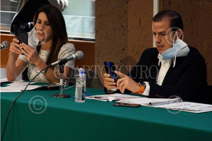 Soraya Pérez Murguía, diputada del PAN y Fernando Galindo Favela, diputado del PRI y presidente de la comisión de Economía, Comercio y Competitividad, encabezaron esta tarde la sesión ordinaria en la que se rechazó la iniciativa eléctrica propuesta por Andrés Manuel López Obrador, presidente de México, que busca reformar la Ley de la Industria Eléctrica.