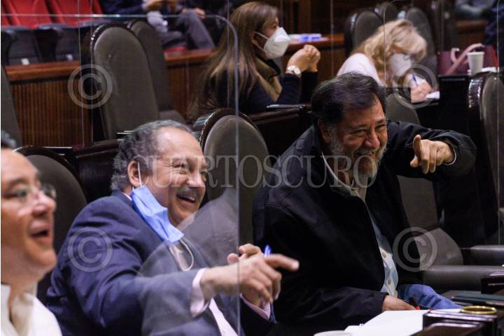 Ricardo Francisco Exsome Zapata, diputado de Morena y Gerardo Fernández Noroña, diputado del PT, durante la sesión ordinaria de la comisión de Energía de la Cámara de Diputados en la que se sometió a discusión la iniciativa eléctrica que busca reformar la Ley de la Industria Eléctrica.