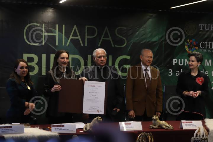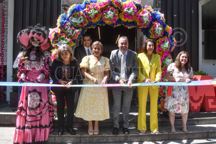 Guadalupe Rodríguez, Subsecretaria de promoción Turistica de Chiapas; Katyna de la Vega Grajales secretaria de turismo del gobierno de Chiapas; Miguel Torruco Marqués, Secretario de Turismo Federal; Humberto Hernández, Subsecretario de Turismo Federal y María de Lourdes Ruíz, directora de la Casa de las Artesanías de Chiapas durante la inauguración oficial de “Punto México” entre la Secretaría de Turismo Federal y el Estado de Chiapas.