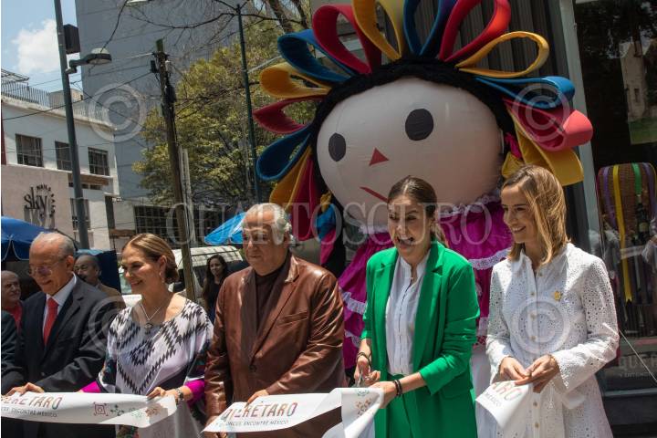 Humberto Hernández Haddad, Miguel Torruco, Gloria Garza de la Garza, y Adriana Vega, cortaron el listón inaugural de la exposición turística "Querétaro" en Punto México de la Secretaría de Turismo.
