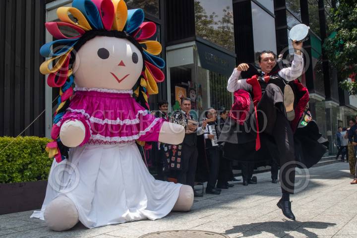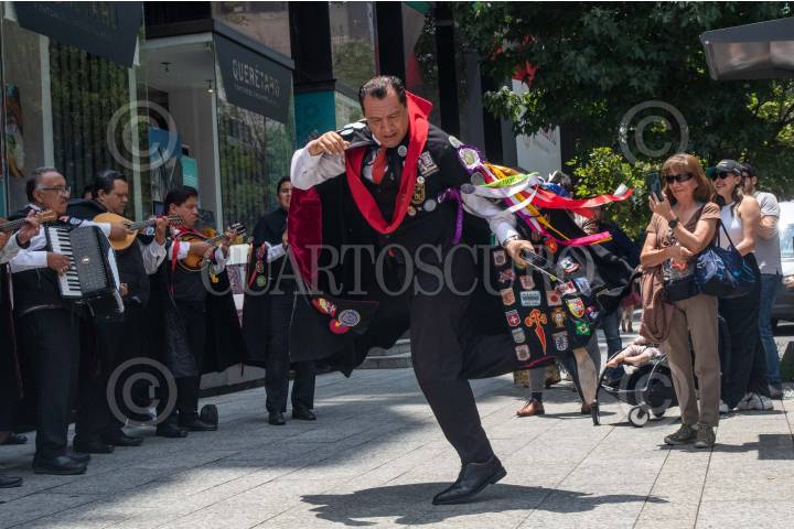 Una estudiantina ofreció un recital musical afuera de Punto México en donde se inauguró la exposición "Querétaro" en Punto México de la Secretaría de Turismo.