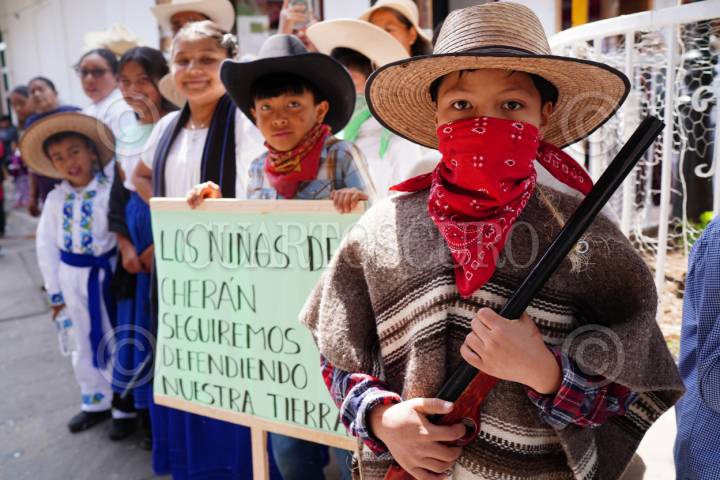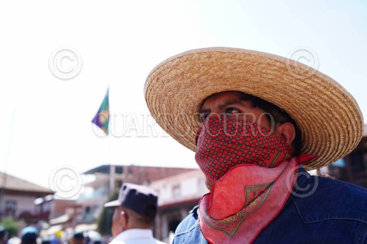 CHERÁN, MICHOACÁN, 15ABRIL2025. Este 15 de abril se cumplieron 14 años de la expulsión del crimen organizado y los talamontes que destruían el bosque y las posibilidades de una vida digna y segura en Cherán K´eri, comunidad purépecha de aproximadamente 20 mil habitantes ubicada en el estado de Michoacán de Ocampo, México. Hoy día, gracias a la instauración de un gobierno basado en su sistema de usos y costumbres, la conmemoración del alzamiento fue acompañada, entre muchas más actividades, por un ritual realizado en El Calvario, el cual inició a las 6 de la mañana para recibir el alba, además de un desfile encabezado por la Ronda Comunitaria seguido de mujeres, hombres, jóvenes, niñas y niños que recorrieron los cuatro barrios del municipio autónomo. FOTO: JUAN JOSÉ ESTRADA SERAFÍN/CUARTOSCURO.COM