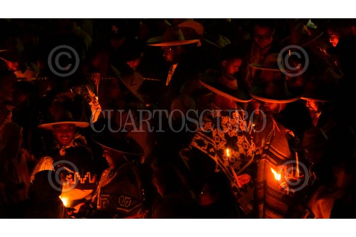 OCUMICHO, MICHOACÁNDEOCAMPO, 01FEBRERO2024.- Con música, ofrendas y danzas tradicionales, cientos de personas de las cuatro regiones purépechas (Región Ciénega, Región Lago, Región 11 pueblos y Sierra Meseta Purépecha) arribaron al zócalo de la comunidad de Ocumicho para celebrar ésta noche el Año Nuevo Purépecha. FOTO: GRACIELA LÓPEZ /CUARTOSCURO.COM