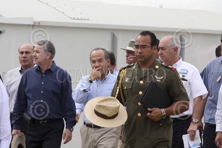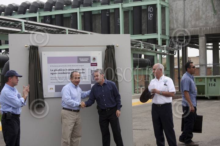 TLAJOMULCO DE ZÚÑIGA, JALISCO, 17MARZO2012.-Felipe Calderón Hinojosa, presidente de la República inauguró la Planta de Tratamiento de agua "El Ahogado", en dicho evento estuvieron presentes el Gobernador de esta entidad, Emilio González Márquez, así como el Director de la Comisión Nacional del Agua (CONAGUA), José Luis Luege Tamargo y el titular de la comisión Estatal del Agua (CEA), Cesar Coll Carabias. FOTO: FERNANDO CARRANZA /CUARTOSCURO.COM