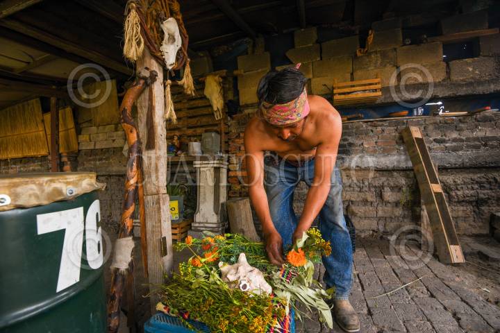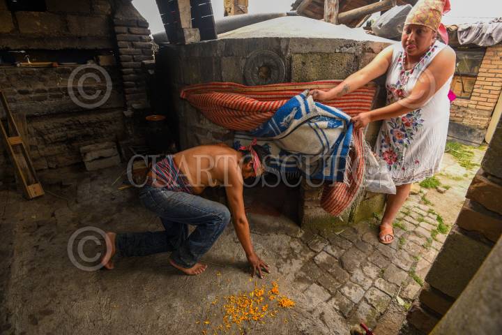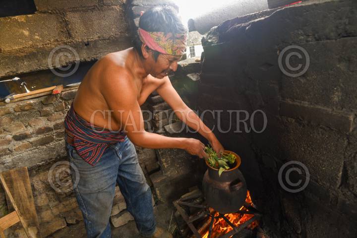 TOLUCA, ESTADO DE MÉXICO, 03NOVIEMBRE2023.- Pedro Gómez de San Pablo Autopan en Toluca inició con un temazcal de manera casera que solo daba servicio a su familia pero poco a poco la gente lo fue conociendo y empezaron a acudir a solicitarle el servicio, a base de hierbas como Eucalipto, pericón, hierba del sapo, ruda y en esta época cempasúchil prepara el temazcal y tés que se ofrecen a los que acuden, es visto como una forma de purificación y sanación tradicional, también dan masajes que relajan a los visitantes. Los visitan de varios puntos de la zona indígena de Toluca como San Cristóbal Huichochitlán, San Pablo Autopan y San Andrés Cuexcontitlán así como de municipios como Huixquilucan y Ixtlahuaca. Su temazcal se encuentra a un costado de la deportiva de San Pablo Autopan al pie del Cerro del Perico. FOTO: CRISANTA ESPINOSA AGUILAR /CUARTOSCURO.COM