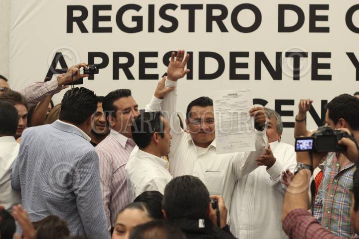 MORELIA, MICHOACÁN, 13MARZO2014. Carlos Torres Piña se registró como aspirante a la dirigencia del Partido de la Revolución Democrática (PRD) y Belinda Iturbide quien fue candidata a la presidencia municipal de Puruándiro para contender como secretaria general dentro de la misma fórmula, esto a fin de dar cumplimiento a los procedimientos que indica la convocatoria de la fuerza política. FOTO: JUAN JOSÉ ESTRADA SERAFÍN /CUARTOSCURO.COM