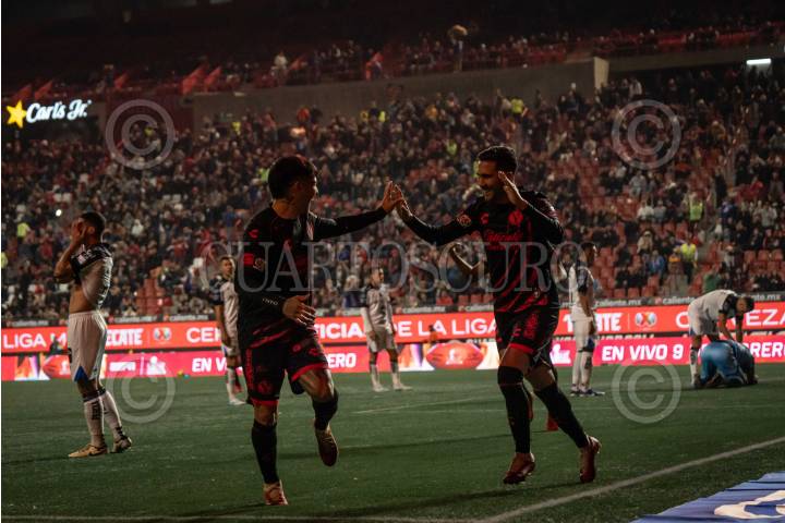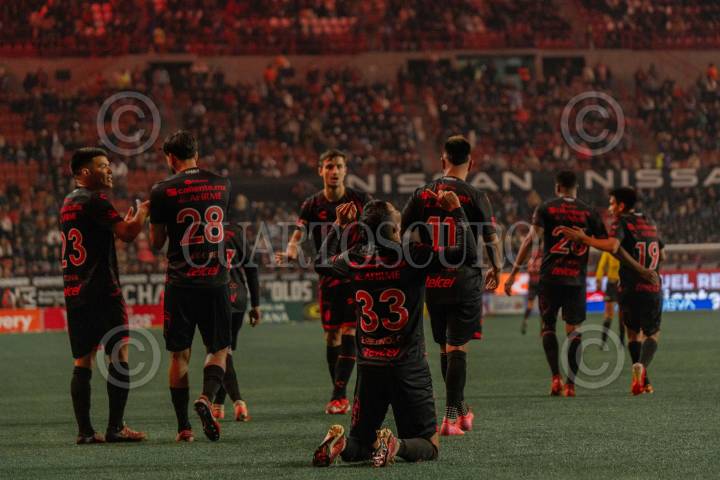 TIJUANA BAJA CALIFORNIA 24ENERO2025.- Xolos de Tijuana celebrando su gol. Los Xolos de Tijuana lograron su primera victoria del torneo Clausura 2025 al imponerse 2-1 a Querétaro en el Estadio Caliente, en partido correspondiente a la jornada 3 de la Liga MX. El equipo tijuanense mostró determinación y aprovechó su condición de local para quedarse con los tres puntos. Con este triunfo, el conjunto fronterizo suma 4 puntos en el certamen, demostrando mejoría en su juego y dejando atrás un inicio complicado. La afición en el estadio celebró el esfuerzo y compromiso del equipo, que mostró carácter para asegurar la victoria. Ahora, los Xolos se preparan para su próximo desafío: una visita al estadio de Tigres, en un duelo que promete ser emocionante. Juan Carlos Osorio y su cuerpo técnico trabajan en ajustar los detalles necesarios para encarar a uno de los equipos más sólidos de la liga. FOTO: CHRIS NOYOLA/CUARTOSCURO.COM