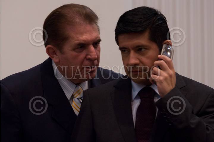 QUERETARO, QUERETARO, 09DICIEMBRE2009.- Adolfo Vega Montoto Secretario de Seguridad ciudadana y de Jorge García Secretario de gobierno, durante la instalación del Consejo Estatal de Seguridad, hecho por el gobernador del estado. FOTO: DEMIAN CHAVEZ/CUARTOSCURO.COM