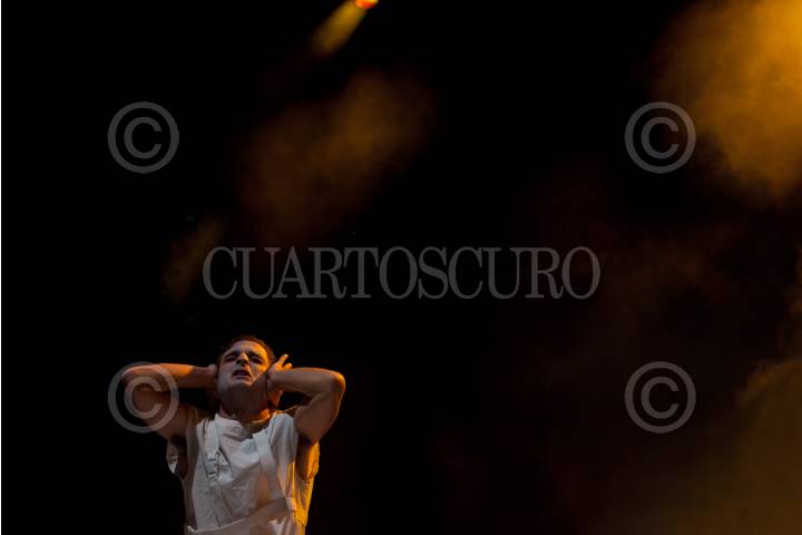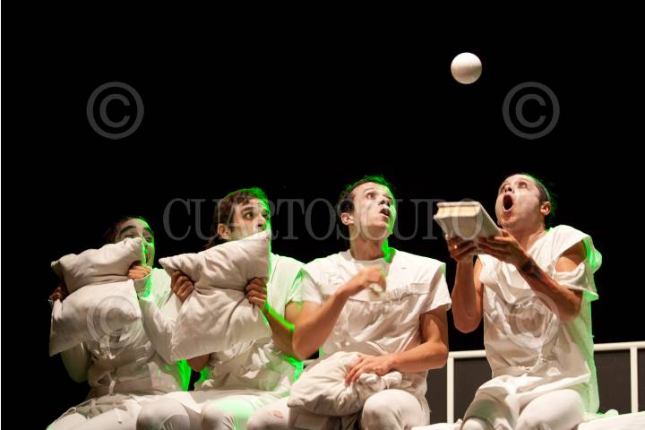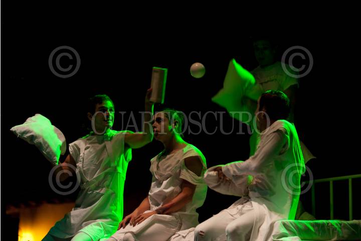 QUERÉTARO, QUERÉTARO, 19AGOSTO2011.- Aspectos del espectáculo "Todos Somos Roger", circo contemporáneo de la compañía CirKo-Demente, obra interpretada por Ramón Solano, Leonardo Constantini, Sergio A. López y Nicolás Ormazabal; durante el festival internacional SiguienteScena IV. FOTO: DEMIAN CHÁVEZ/CUARTOSCURO.COM