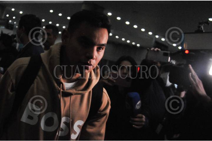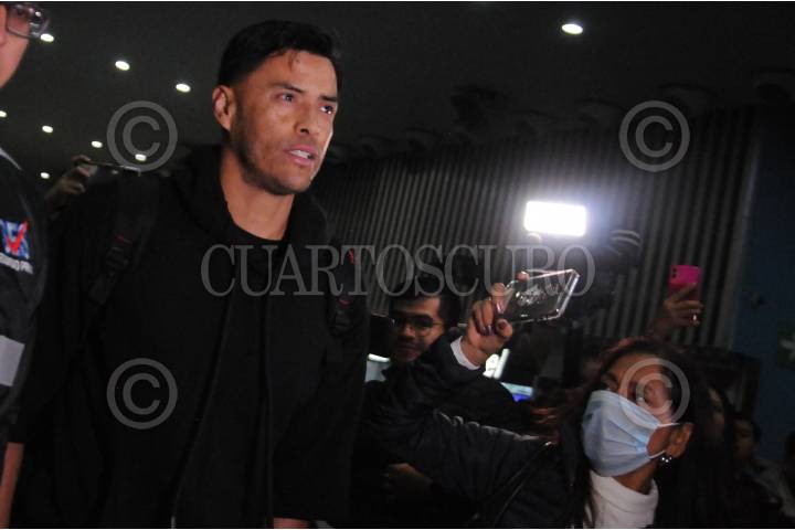 Alfredo Talavera, portero de la selección, sale del AICM.