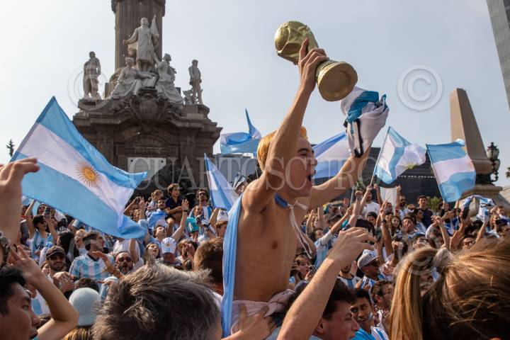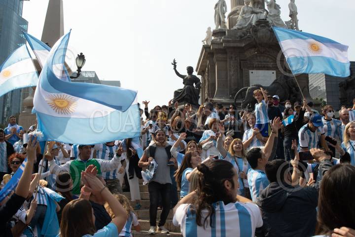 La comunidad argentina celebró que su selección logrará ganar la Copa del Mundo Qatar 2022 en el Ángel de la Independencia.