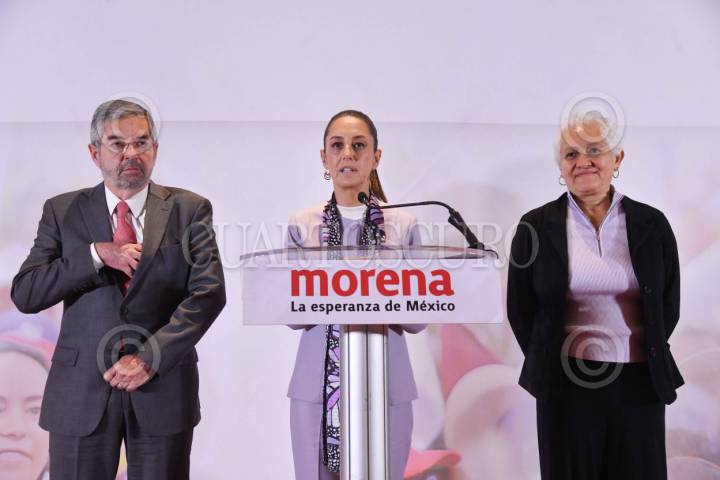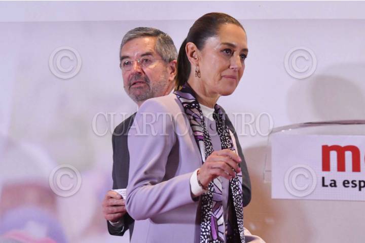 CIUDAD DE MÉXICO, 20FEBRERO204.- Claudia Sheinbaum, candidata a la presidencia por la coalición "Sigamos Haciendo Historia", y Juan Ramón de la Fuente, durante su mensaje a medios, luego de su reunión privada con Mohammed Alkuwari, embajador de Qatar en México. FOTO: MARIO JASSO/CUARTOSCURO.COM