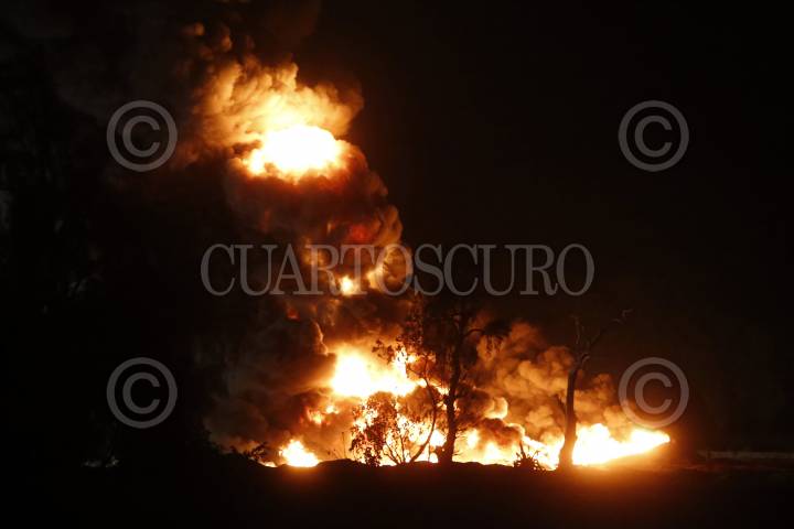 QUECHOLAC, PUEBLA, 16MARZO2016.- Se reportan más de 30 horas de fuego en el incidente que se suscitó en un ducto de Pemex de esta localidad, esto a pesar de que la empresa corto el suministro del combustible. Que por la madrugada se presentó el percance en lo que fue reportado como una toma clandestina, y que se ubica a 500 metros de kilómetro 186 de la autopista Mexico-Orizaba. FOTO: HILDA RIOS /CUARTOSCURO.COM