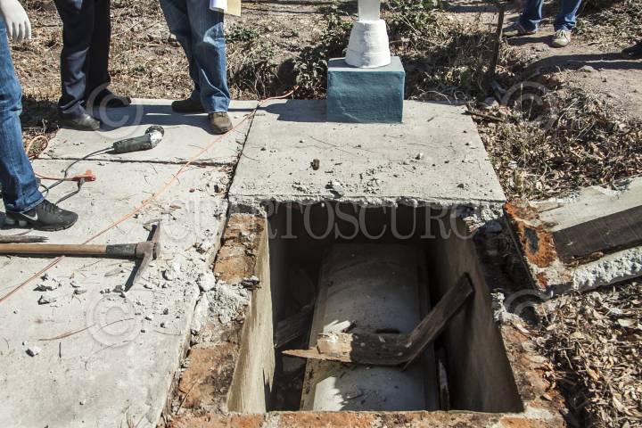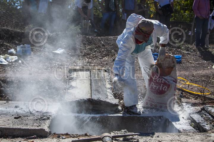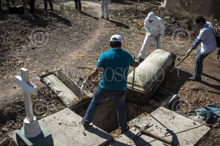 QUELÍTE, SINALOA, 02FEBRERO2017.- En el panteón Ubicado en el poblado El Quelíte autoridades y una comitiva de la tercera Brigada Nacional de Búsqueda de desaparecidos realizaron la exhumación de un cuerpo que fue enterrado en el 2014 supuestamente identificado en su momento como Ernesto Manjarrez Garcia quien meses después apareció en Estados Unidos, peritos realizan las pruebas de ADN para encontrar la verdadera identidad de la víctima. FOTO: RASHIDE FRIAS /CUARTOSCURO.COM
