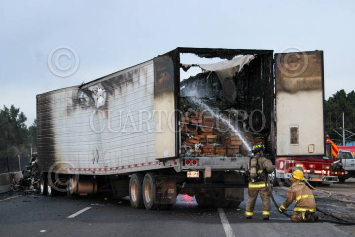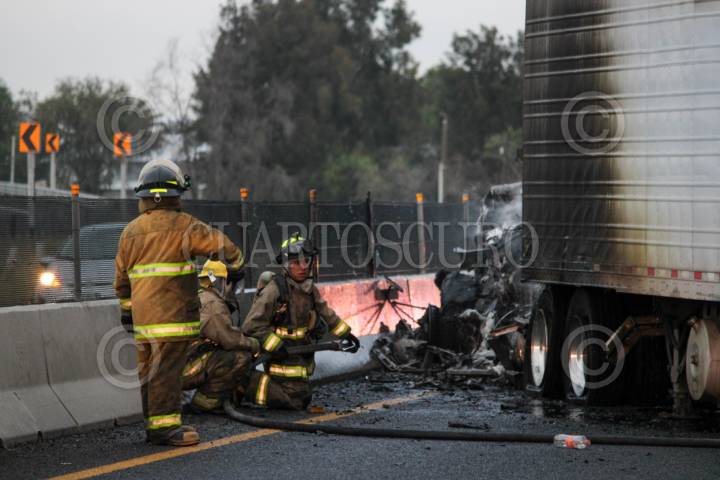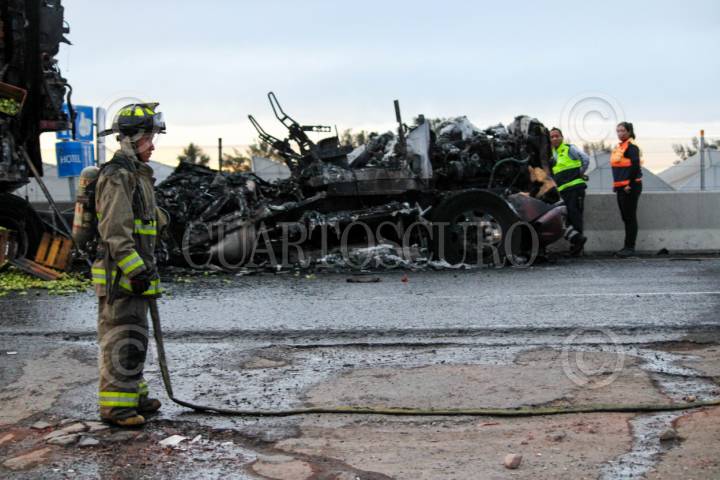 CELAYA, GUANAJUATO, 07ENERO2024.- Se registraron la quema de varios carros y camiones, uno de ellos en la carretera Celaya-Juventino Rosas, el cuál fue controlado bomberos, Autoridades de la Secretaria de Seguridad informo que un bombero fue asesinado por hombres armados mientras atendía una emergencia. Se desconoce el motivo de estos ataques, aunque trascendió que fue por la detención de un líder criminal, sien embargo autoridades no confirmaron el evento. FOTO: DIEGO COSTA/CUARTOSCURO.COM