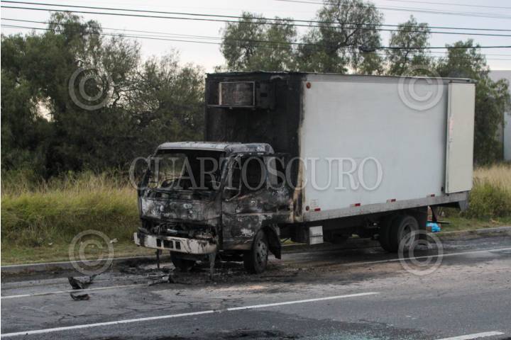 CELAYA, GUANAJUATO, 07ENERO2024.- Se registraron la quema de varios carros y camiones, uno de ellos en la carretera Celaya-Juventino Rosas, el cuál fue controlado bomberos, Autoridades de la Secretaria de Seguridad informo que un bombero fue asesinado por hombres armados cuando iba en un camión bomba a atender una emergencia. Se desconoce el motivo de estos ataques, aunque trascendió que fue por la detención de un líder criminal, sien embargo autoridades no confirmaron el evento. FOTO: DIEGO COSTA/CUARTOSCURO.COM