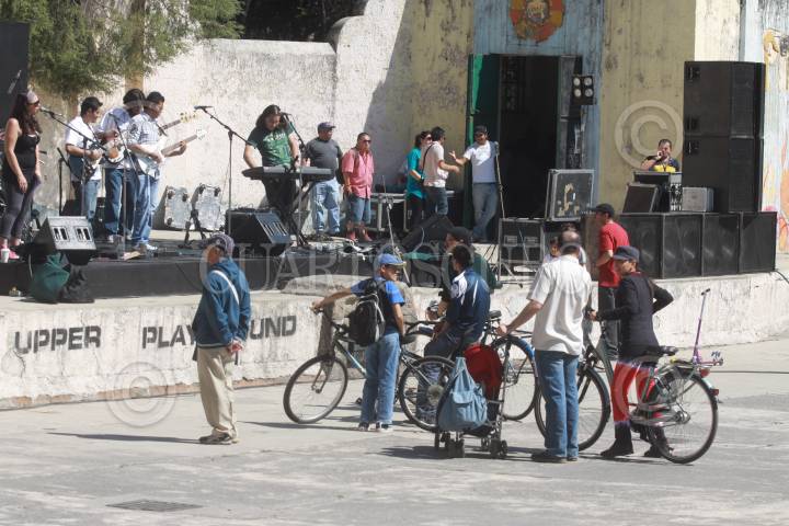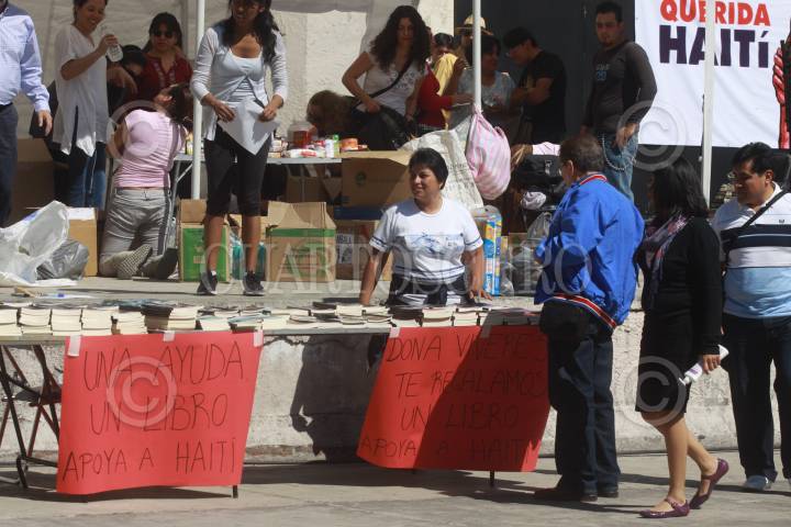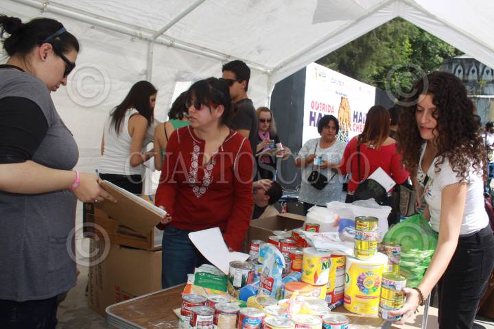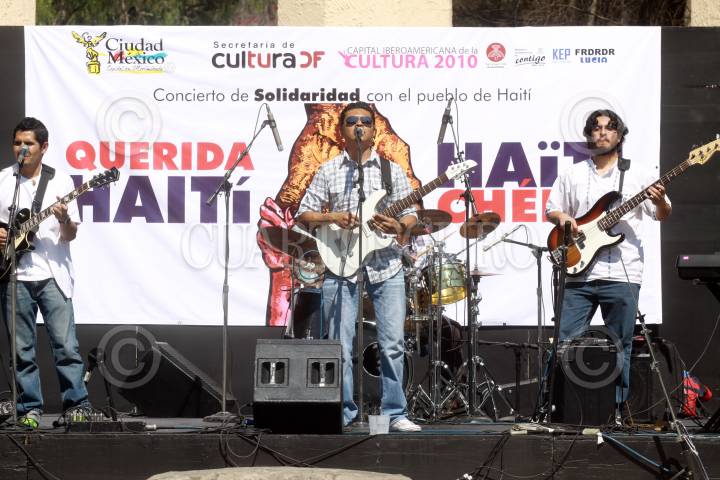 MÉXICO D.F., 24ENERO2010.- Vecinos de la colonia Condesa audieron al Parque México donde se realizó el Festival artístico Querida Haití, Haïti Chérie donde se presentaron grupos de rock, todo con el fin de recolectar agua embotellada, alimentos enlatados, aceite, azúcar, frijol, arroz, lentejas y otros para hacerselos llegar al pueblo Haitiano. FOTO: SÁSHENKA GUTIÉRREZ/CUARTOSCURO.COM