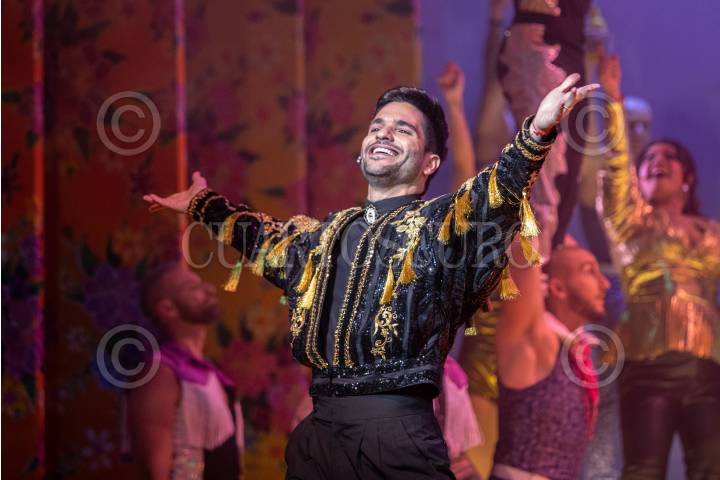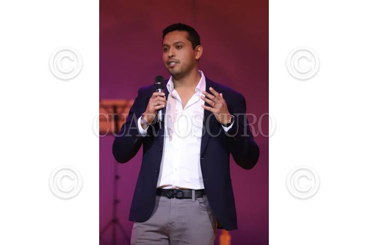 El hijo de Juan Gabriel, Iván Aguilera durante el estreno de Cirque Música Querida La celebración de Juan Gabriel, en el Teatro San Rafael.