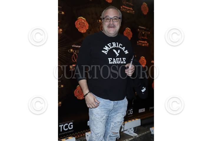 Lalo Manzano a su paso por la alfombra roja del estreno de Cirque Música Querida, La celebración de Juan Gabriel, en el Teatro San Rafael.